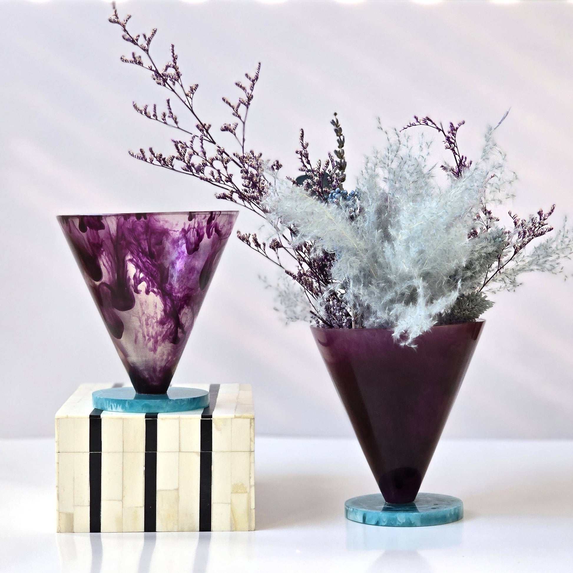 Gorgeous Flower Vases, in 2 tone Bright Shades Each piece is Hand poured and polished to its glory.