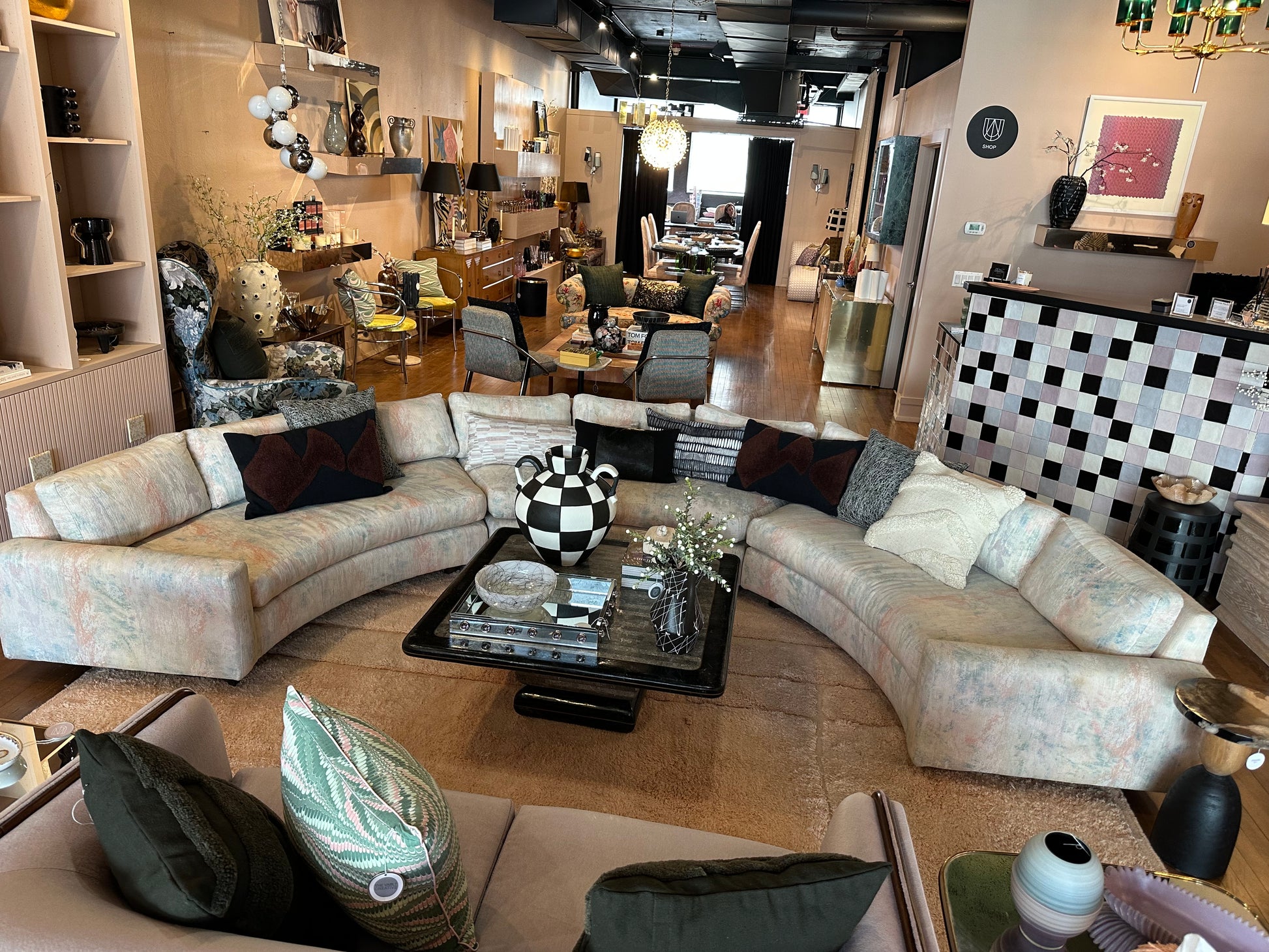 Vintage semi-circle, 3 piece sofa in original 1980’s fabric in excellent condition.